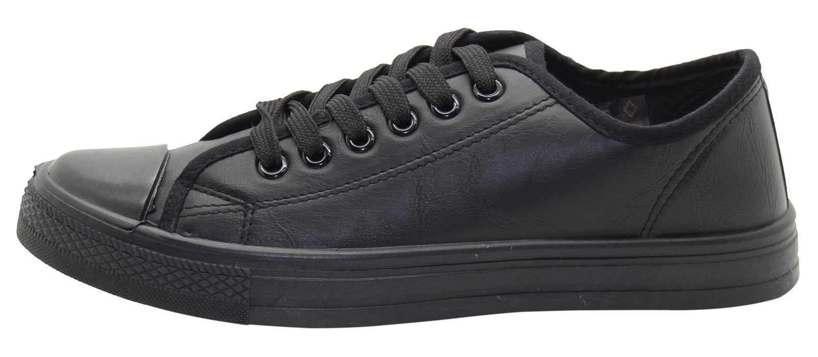 Emma Shoes Ladies Open-Back Baltimor Plimsoll Laceup Trainer (7 UK, Cambridge-All Black)
