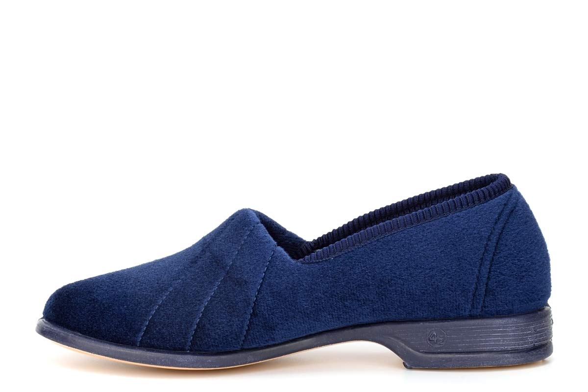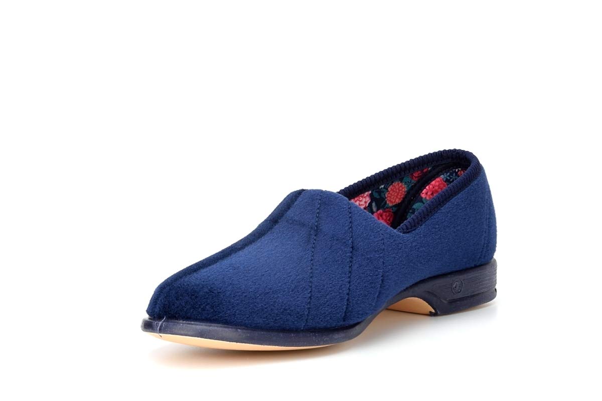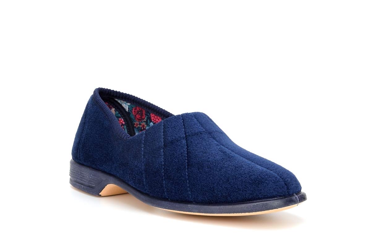 Ladies Navy Velour Roll Top Slipper – Audrey III – Navy – size UK Ladies Size 3